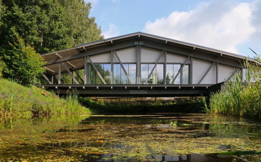 Этот коттедж, служащий не только местом проживания, но еще и мостом, также находится в Заокском районе. Автором проекта стало бюро «Bio-architects». Заказчик — коттеджный поселок «Капитан club». Дом построен в 2018 году.