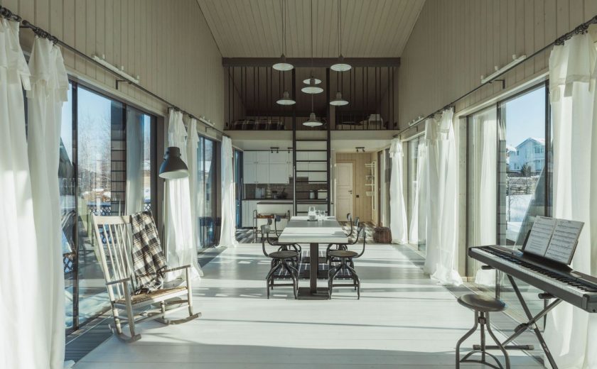 Все номера двухэтажные и выполнены в скандинавском стиле. В спальне есть раздвижные кровати, которые бесшумно стыкуются. Она находится на втором этаже. Внизу — гостиная с раскладным диваном. В доме-теплице можно отдохнуть большой семьей. До 5 гостей могут разместиться в стандартном номере и до 10 гостей — в большом.