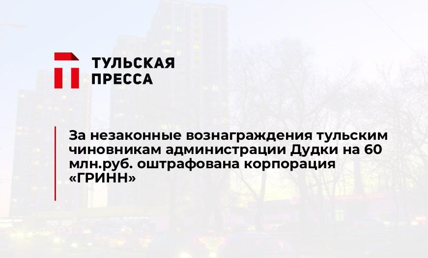 По требованию прокуратуры Тульской области судом ЗАО «Корпорация «ГРИНН» за незаконное вознаграждение от имени юридического лица подвергнуто административному штрафу в размере 60 миллионов рублей.