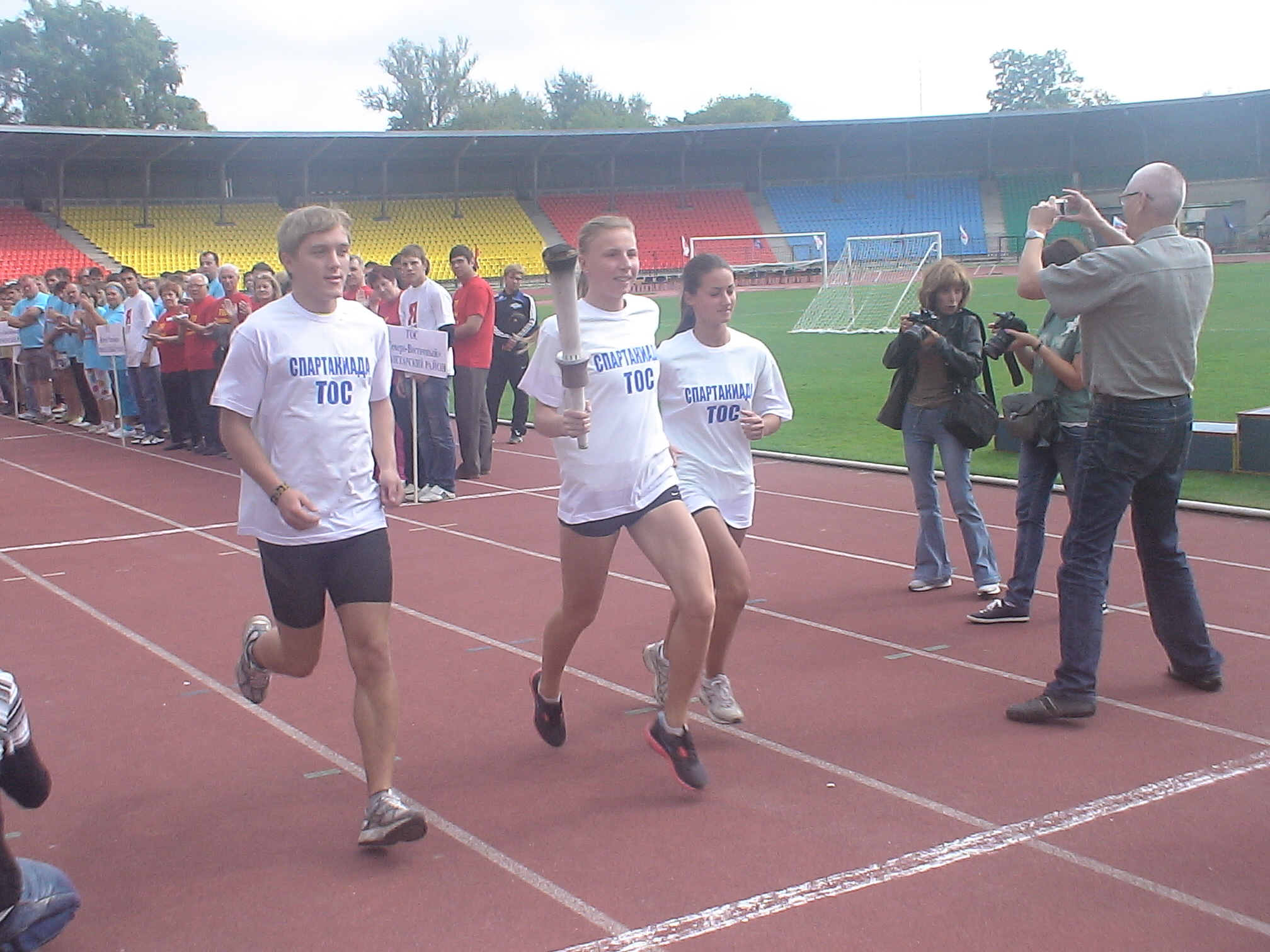 Факел с огнем Спартакиады несла член сборной России по легкой атлетике, бронзовый призер чемпионата мира Екатерина Реньжина.