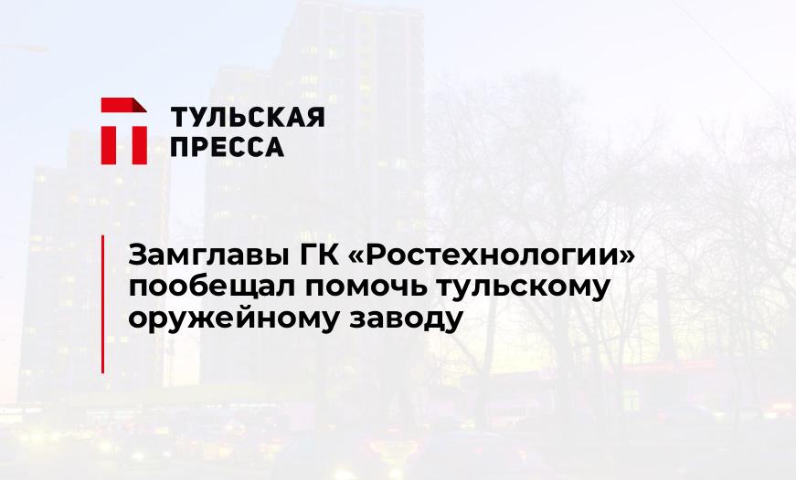 Первый заместитель генерального директора государственной корпорации «Ростехнологии» Алексей Алешин в ходе своего рабочего визита в Тулу пообещал помочь старейшему оборонному предприятию страны- тульскому оружейному заводу, который находится в глубоком кризисе, сообщает пресс-служба правительства региона.