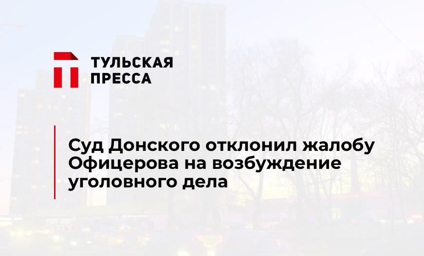 Донской городской суд Тульской области оставил без удовлетворения жалобу главы местной администрации Сергея Офицерова, которого следствие подозревает в присвоении бюджетных средств, на возбуждение в отношении него уголовного дела, сообщили ИА «Тульская пресса» в пресс-службе суда.