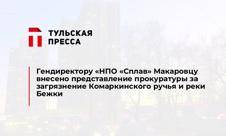 Гендиректору НПО Сплав Макаровцу внесено представление прокуратуры за загрязнение Комаркинского ручья и реки Бежки