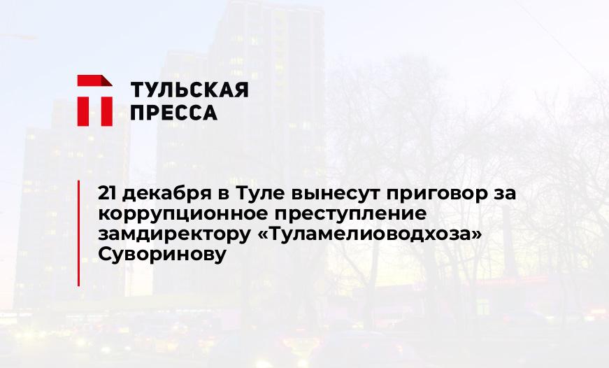 В Центральном районном суде города Тулы на 21 декабря назначено оглашение приговора по уголовному делу в отношении заместителя директора ФГУ «Управление «Туламелиоводхоз» Г.Суворинова, обвиняемого в причинении государству ущерба около 40 млн.рублей.