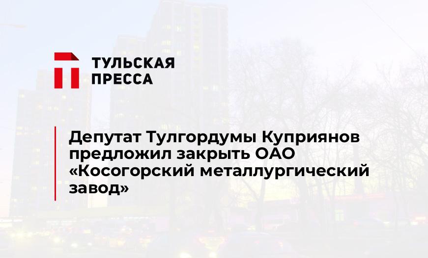 Депутат Тульской городской Думы, член депутатской группы КПРФ, Станислав Куприянов предложил коллегам-депутатам рассмотреть вопрос о закрытии ОАО «Косогорский металлургический завод». Соответствующий вопрос он предложил включить в повестку дня заседания городского представительного органа.