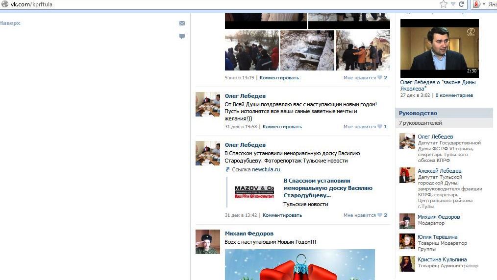 А и сам Олег Лебедев, и его родной брат — депутат Тульской городской Думы Алексей Лебедев, указаны в этой группе, которую Алексей Мурат назвал нелегитимной группой Тульского обкома КПРФ, в числе руководства.