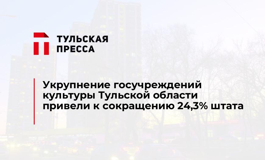 По результатам реорганизации учреждений культуры Тульской области было сокращено 118,5 штатных единиц, что составило 24,3%, проинформировала директор регионального департамента культуры на заседании правительства Тульской области Татьяна Рыбкина.