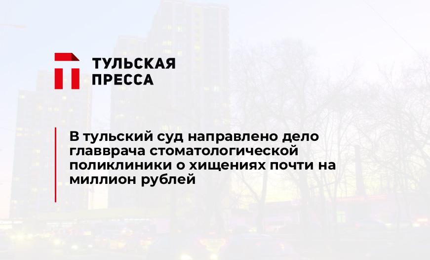 В Тульской области бывший главный врач поликлиники предстанет перед судом за присвоение денежных средств. Как стало известно ИА «Тульская пресса», следственными органами СКР по Тульской области завершено расследование уголовного дела в отношении бывшего 63-летнего главного врача ГУЗ «Стоматологическая поликлиника № 1».