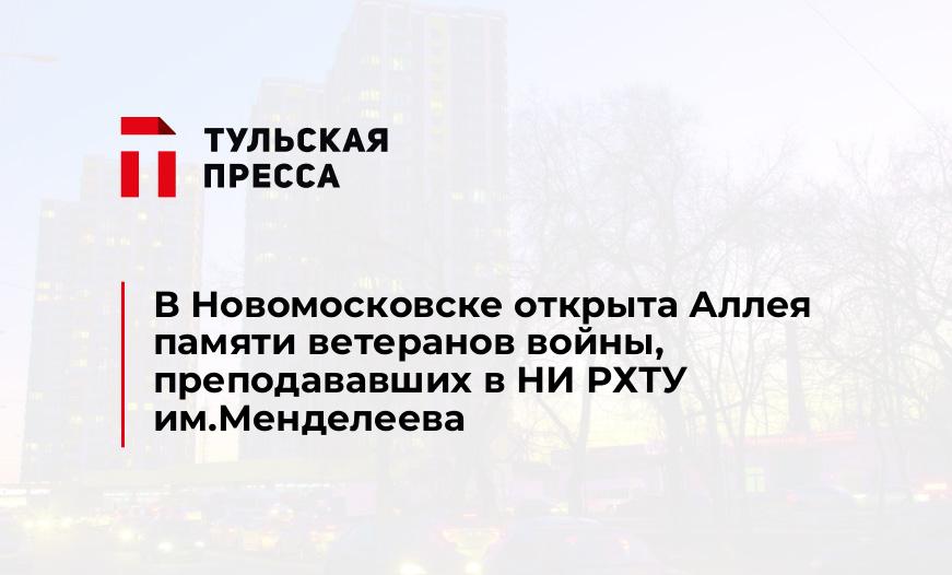В Новомосковске накануне Дня Победы открыты Аллея памяти. Как стало известно ИА «Тульская пресса», церемония состоялась 7 мая в НИ РХТУ им.Д.И.Менделеева. Аллея посвящена памяти ветеранов Великой Отечественной войны, преподававших в вузе.