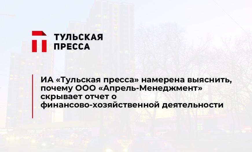 Руководство тульской управляющей компании ООО «Апрель-Менеджмент» оштрафовано региональной Госжилинспекцией за непредоставление жителям многоквартирных домов сведений по финансово-хозяйственной деятельности. ИА «Тульская пресса» намерена выяснить, почему управляющая компания пошла на подобное административное нарушение.