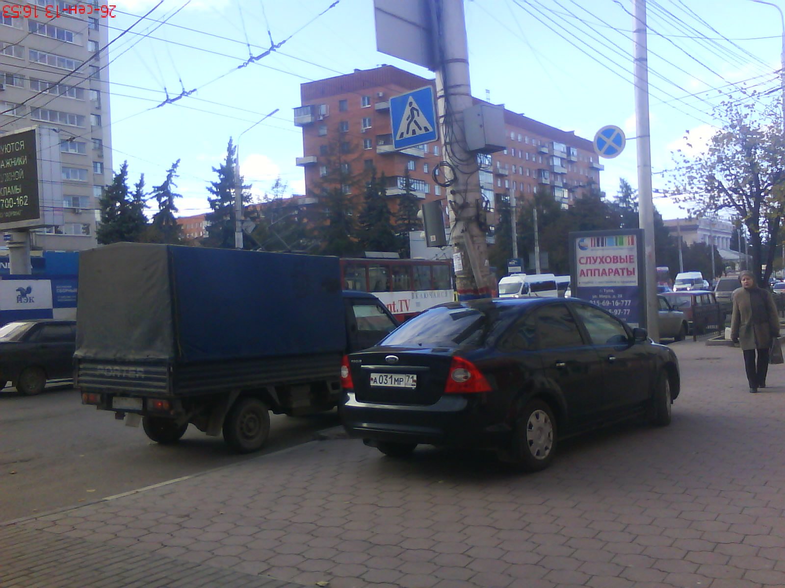 «Черный Форд Фокус 2 cедан с госномерами А 031 МР 71 припаркован на тротуаре. Ул. Советская, около технопарка и комендатуры, под знаком «Пешеходный переход».