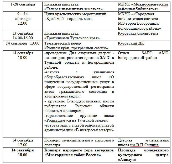 О плане проведения Дня Тульской области в муниципальных районах и городских округах Тульской области 14 сентября 2013 года сообщили в пресс-службе регионального правительства.