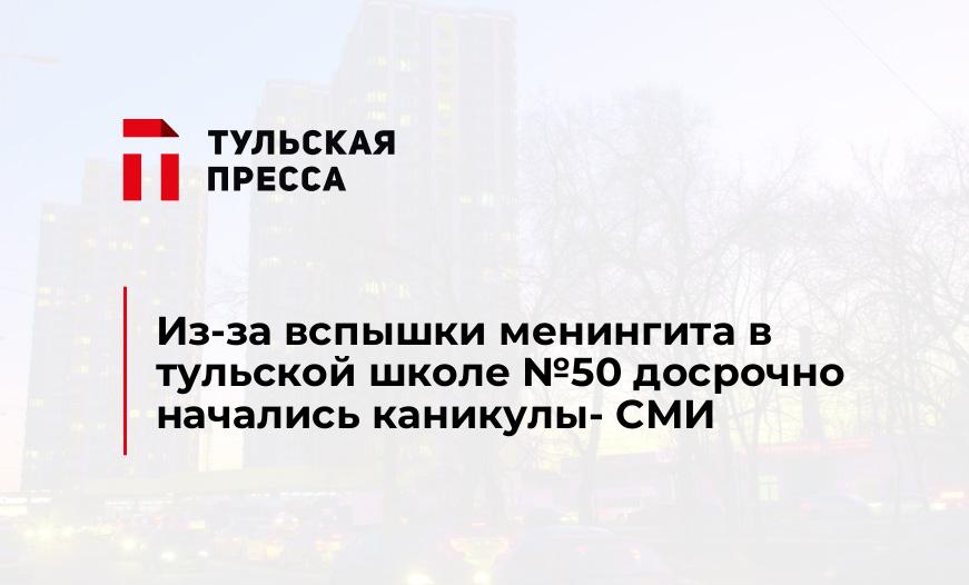 Преждевременные каникулы начались в школе №50 города Тулы из-за вспышки менингита. Двое учащихся были госпитализированы с подозрением на диагноз в начале недели, остальные ученики- отпущены по домам, сообщил сайт ГТРК «Тула«.