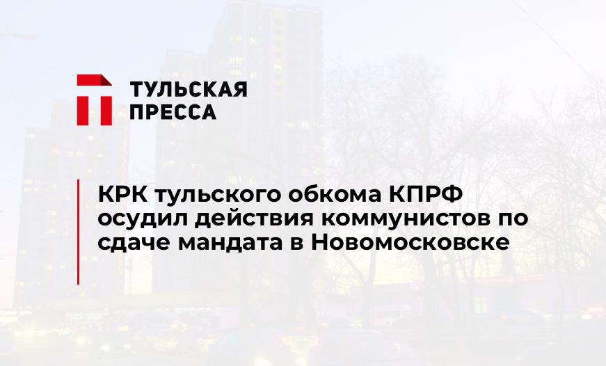 Контрольно-ревизионная комиссия тульского обкома КПРФ осудила действия коммунистов после выборов в Новомосковске, когда более 20 кандидатов от КПРФ друг за другом отказались от одного мандата в городское Собрание депутатов. В итоге, он достался местному бензиновому магнату, бывшему члену «Единой России» Валерию Новикову.