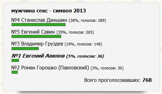 ИА «Тульская пресса» уже писало, что после лишения форварда тульского «Арсенала» Евгения Савинавозможности стать интимным кумиром регионального значения за звание «Секс-символ Тулы 2013 года» спорят губернатор Владимир Груздев, глава администрации Тулы Евгений Авилов, шоумэн Станислав Даньшин и бизнес тренер Роман Горошко.