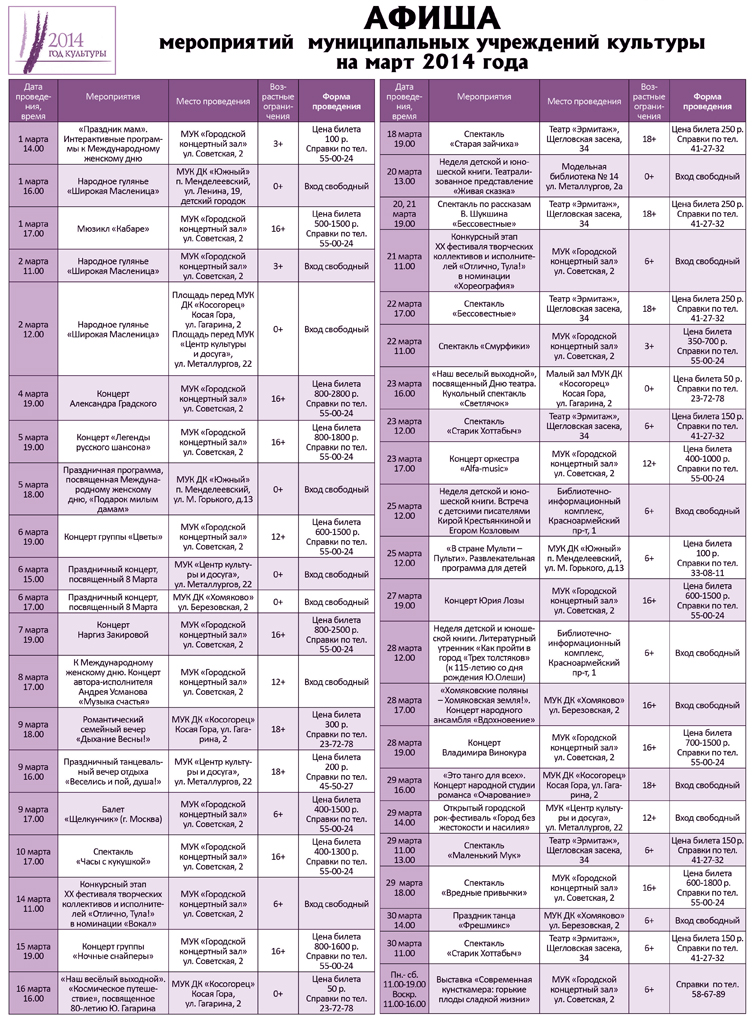 В марте в Туле в учреждениях культуры пройдут праздничные мероприятия, посвященные «Масленице», Международному женскому дню 8 марта и другим праздникам.