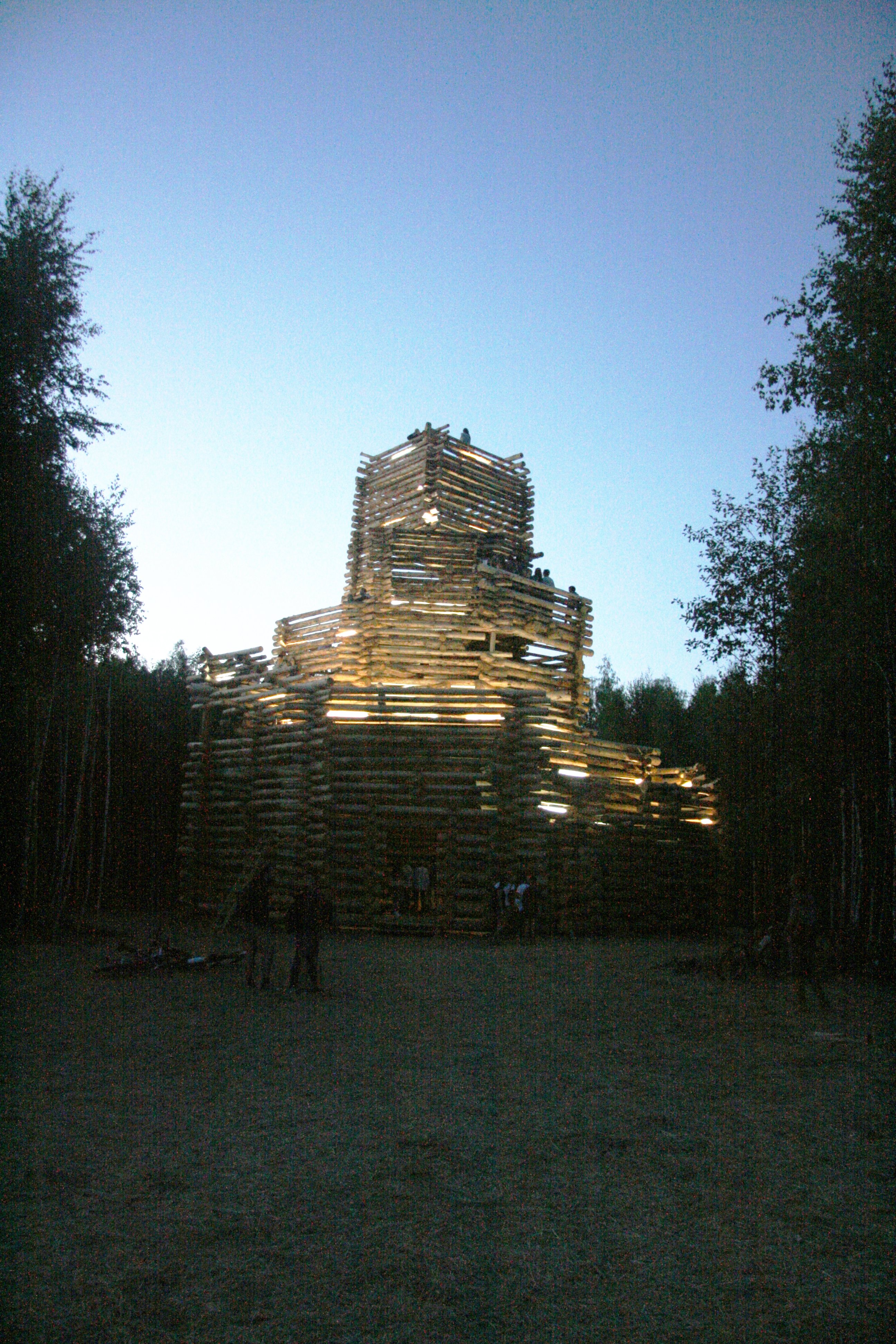 Спроектировала башню из срубов проектная группа «Поле-Дизайн», деньги на возведение собирали всем миром. «Ленивый зиккурат» отсылает к забытым технологиям деревянного зодчества, веками культивировавшимся в России. Бельведер в дальнейшем послужит смотровой башней и помещением для проведения театрализованных и музыкальных представлений.