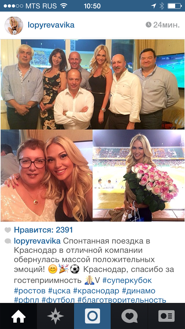 Виктория Лопырева опубликовала фото, сделанные в Краснодаре. Но одном из них запечатлен и Андрей Никитин, гендиректор ПФК «Арсенал» (Тула).