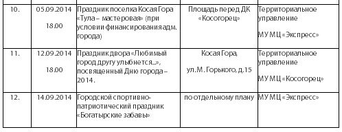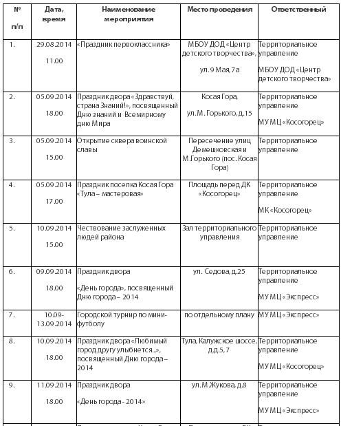 Программа праздничных мероприятий с 1 по 11 сентября 2014 года.