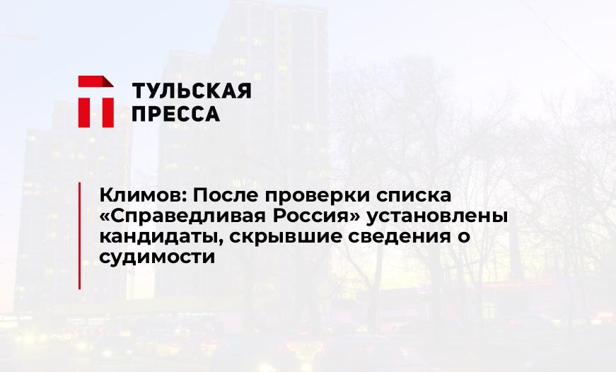 Как сообщает корреспондент ИА «Тульская пресса», секретарь ИКТО Николай Климов заявил, что после проверки списка СР установлены кандидаты, скрывшие сведения о судимости. По словам Климова, в заявлениях кандидатов о согласии баллотироваться от списка «Справедливой России» Людмилы Харченко, Тагира Юнусова и Надежды Олейниковой сведения о судимости не указаны.