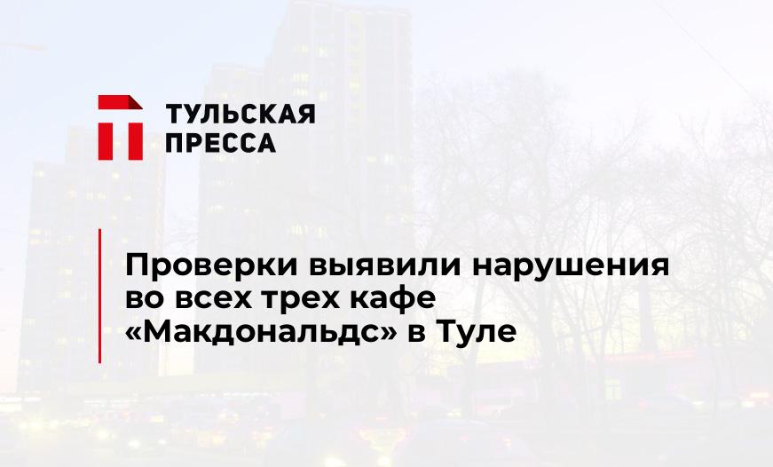 Специалисты Управления Роспотребнадзора по Тульской области выявили нарушения во всех трех кафе «Макдональдс» в областном центре. 11 сентября стало известно о выявленных нарушениях в трёх тульских ресторанах быстрого питания: на улице Арсенальной, на площади около автовокзала, в ТЦ «Гостиный двор». В частности, была обнаружена кишечная палочка в кафе на ул. Арсенальной, пишет сайт «Myslo«.