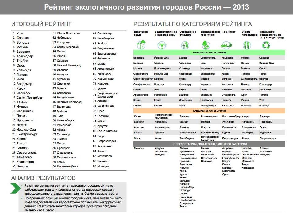 Министерство природных ресурсов и экологии РФ составило экологический рейтинг городов Российской Федерации за 2013 г.