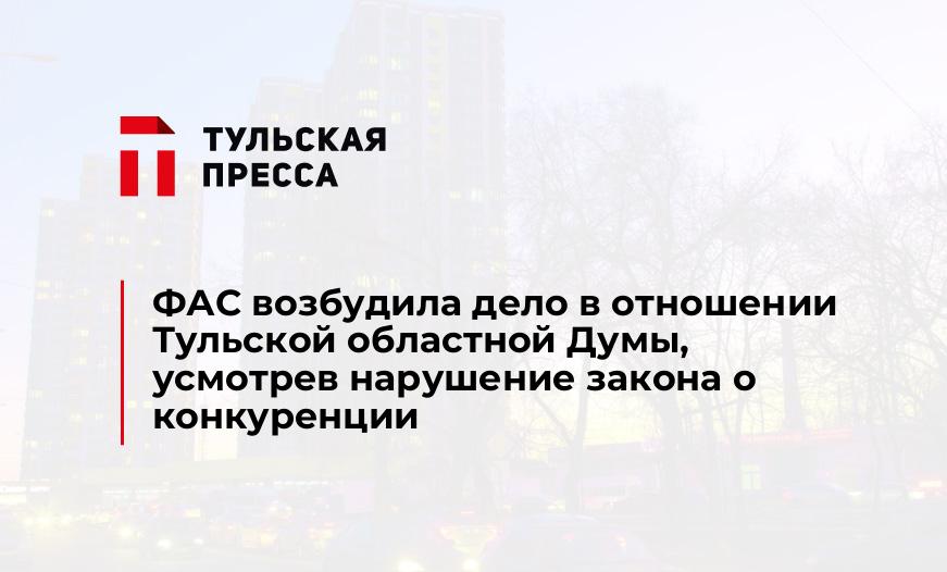 Федеральная антимонопольная служба возбудила дело в отношении Тульской областной Думы по признакам нарушения пунктов 5, 8 части 1 статьи 15 Закона о защите конкуренции, сообщили ИА «Тульская пресса» в пресс-службе федерального ведомства.