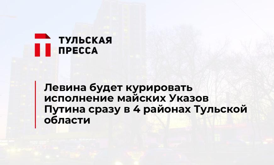Губернатор Владимир Груздев подписал распоряжение о назначении заместителя председателя правительства Тульской области – министра труда и социальной защиты Тульской области Марины Левиной куратором муниципальных образований Арсеньевский район, Белевский район, Дубенский район, Одоевский район, Славный по исполнению Указов Президента РФ Владимира Путина от 7 мая 2012 года, сообщили ИА «Тульская пресса» в пресс-службе областного правительства.