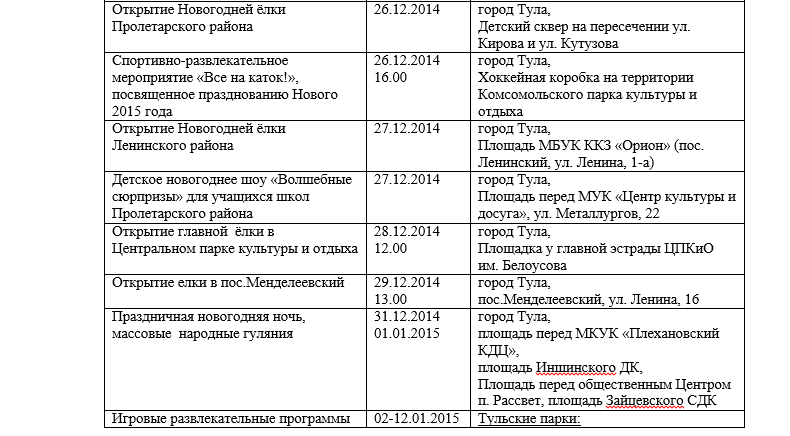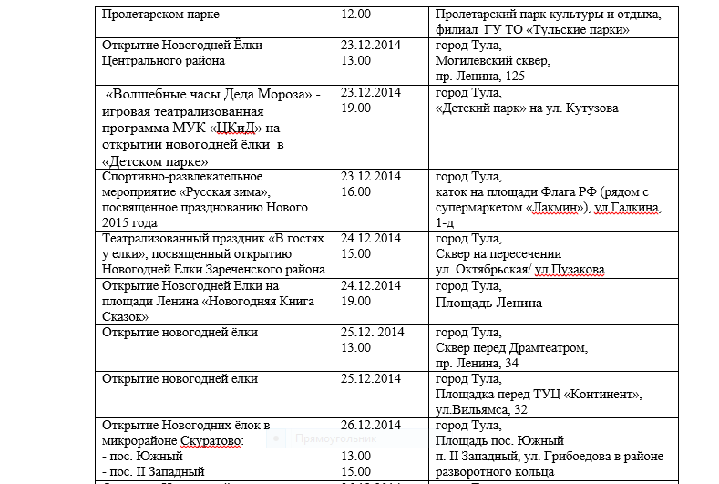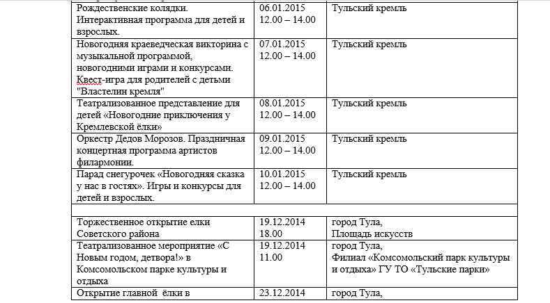 В пресс-службе Тулгордумы ИА «Тульская пресса» предоставили подробную программу новогодних мероприятий.