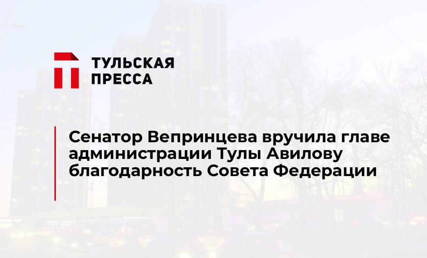 Сенатор Вепринцева вручила главе администрации Тулы Авилову благодарность Совета Федерации