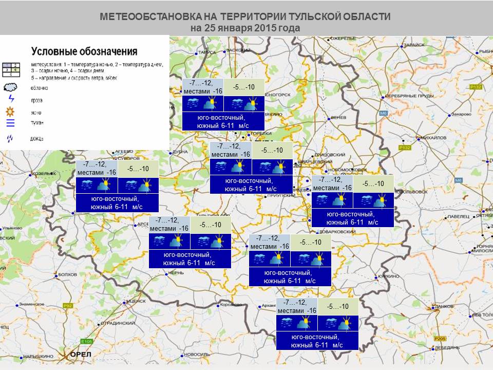 «Метеорологическая обстановка, по данным Тульского центра по гидрометеорологии и мониторингу окружающей среды: