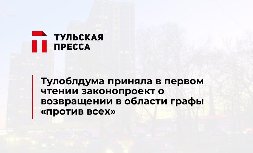 Депутаты Тульской областной Думы на проходящем в эти минуты заседании приняли в первом чтении законопроект, который бы запускал процедуру возвращения графы «против всех» в бюллетени на выборах в регионе.