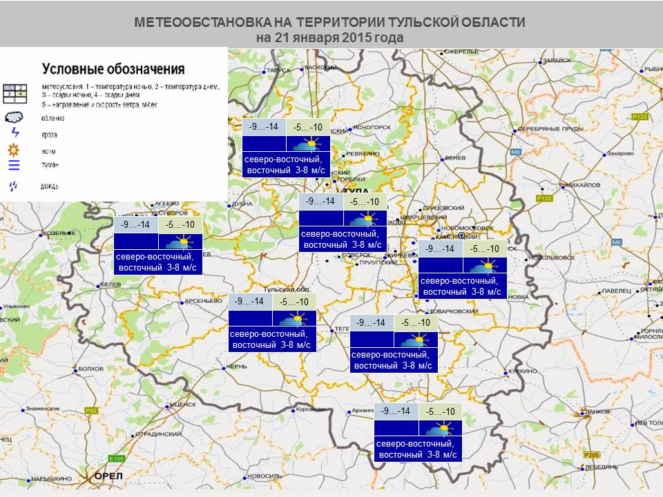 «Метеорологическая обстановка, по данным Тульского центра по гидрометеорологии и мониторингу окружающей среды: