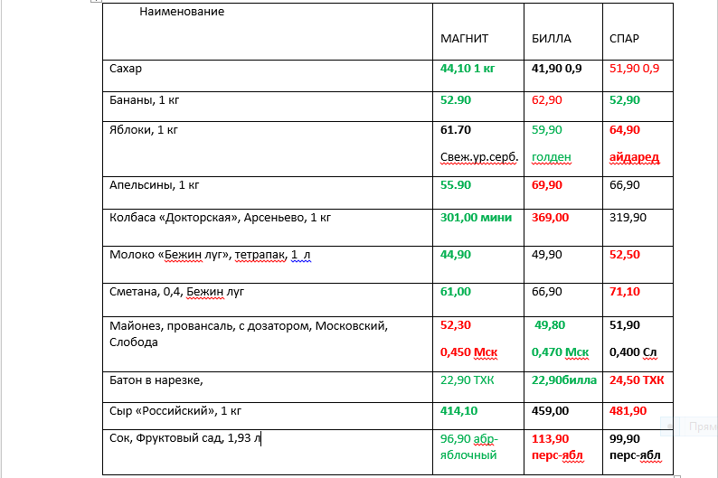 Это проект нашего информационного агентства отслеживает текущие цены и фиксирует динамику их изменения. Мы ведем сбор информации, чтобы сравнивать цены на некоторые виды продуктов в трех разных торговых сетях — «Магнит», «СПАР» и «Билла». Наши сотрудники изучают цен на выбранные группы продовольственных товаров. В их числе, сахар, молочные продукты, хлеб, фрукты и другие. Не исключено, что перечень будет претерпевать изменения. При отсутствии в ассортименте супермаркета конкретного вида товара для сравнения брался аналогичный с минимальной ценовой планкой.
