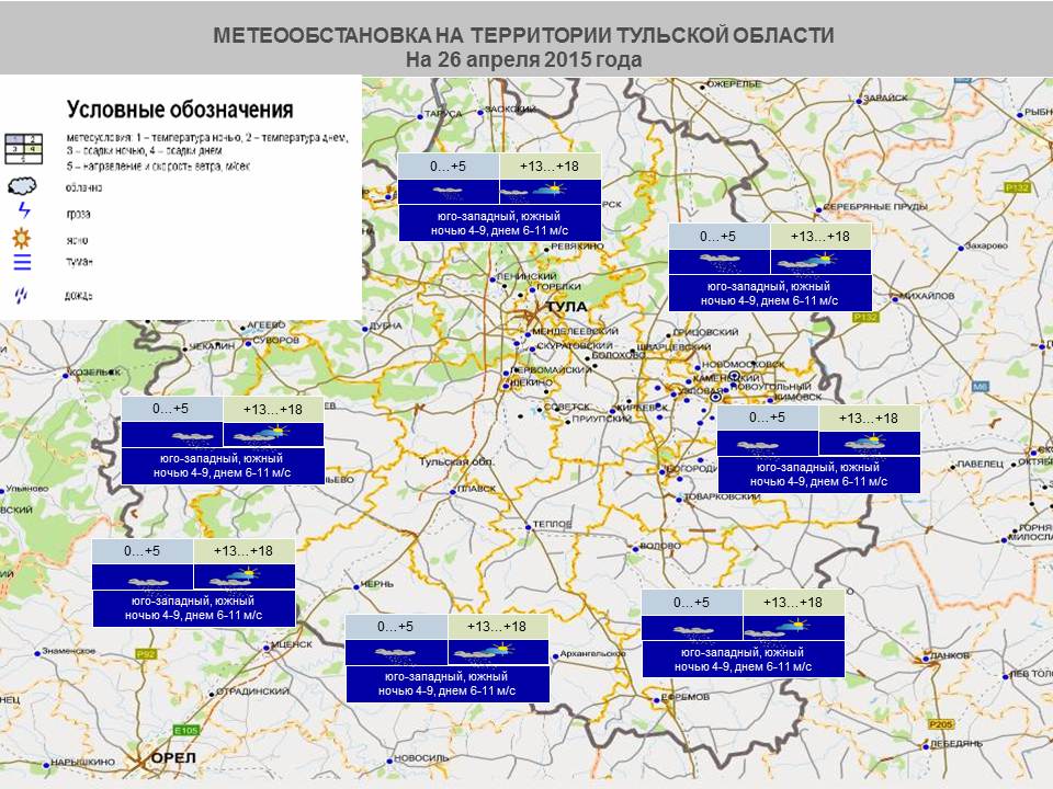 «Метеорологическая обстановка, по данным Тульского центра по гидрометеорологии и мониторингу окружающей среды: