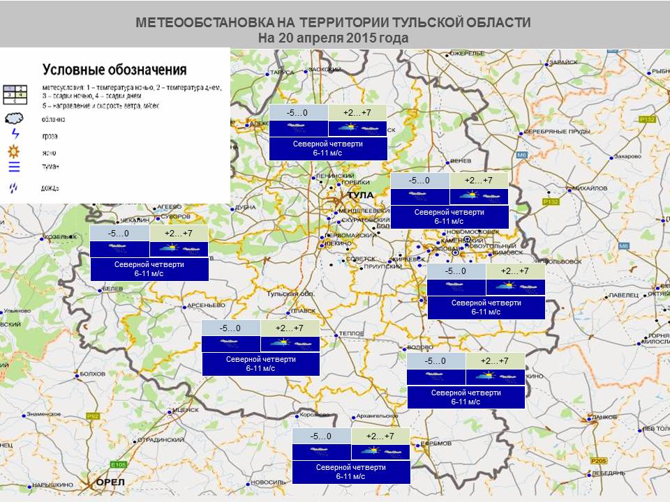 «Метеорологическая обстановка, по данным Тульского центра по гидрометеорологии и мониторингу окружающей среды: