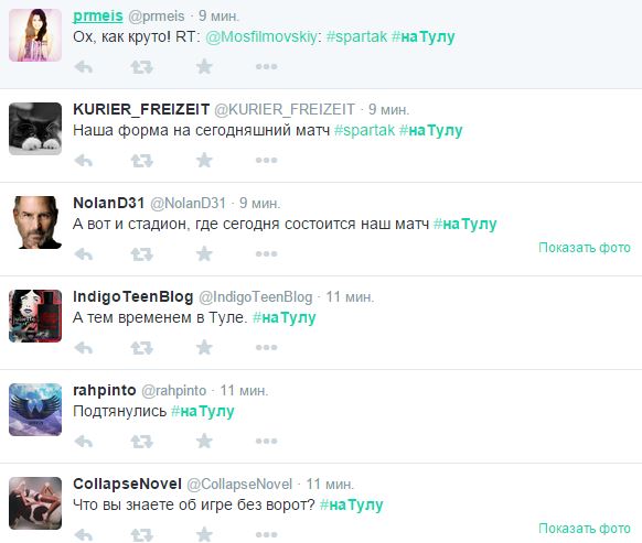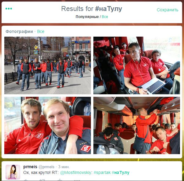 Фанаты «Спартака» активно освещают в микроблогах выезд своей команды в оружейную столицу и сопровождают «твитты» хештегом #наТулу.