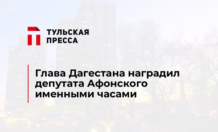 Тульский депутат Госдумы награжден именными часами. Как стало известно ИА «Тульская пресса», депутат Государственной Думы Владимир Афонский награжден памятными именными часами Главы Республики Дагестан Рамазана Абдулатипова за большой вклад в законотворческую деятельность.