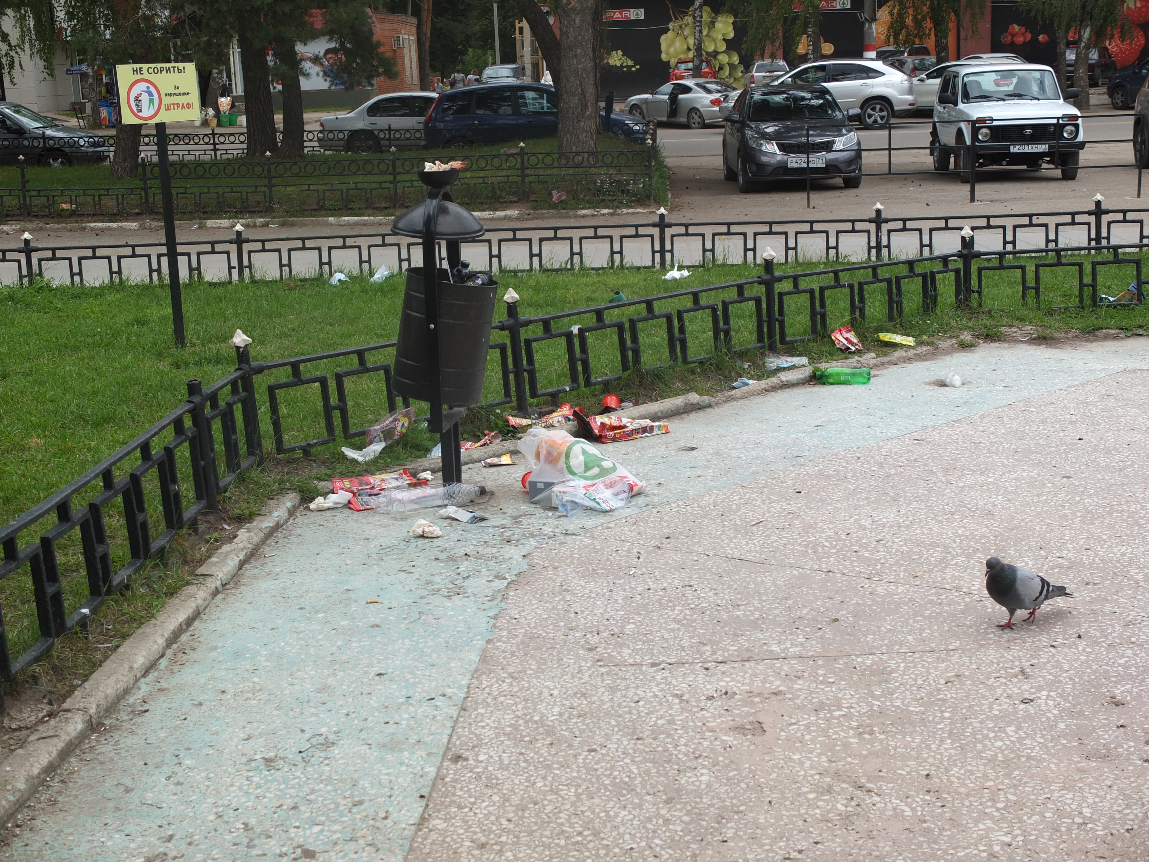 С другой стороны, пованивающие кучи неубранного мусора возле переполненных урн и, извините за неловкое слово, весьма пошарпанный вид главного алексинского храма культуры, не дают взгляду наслаждаться покоем и благолепием.