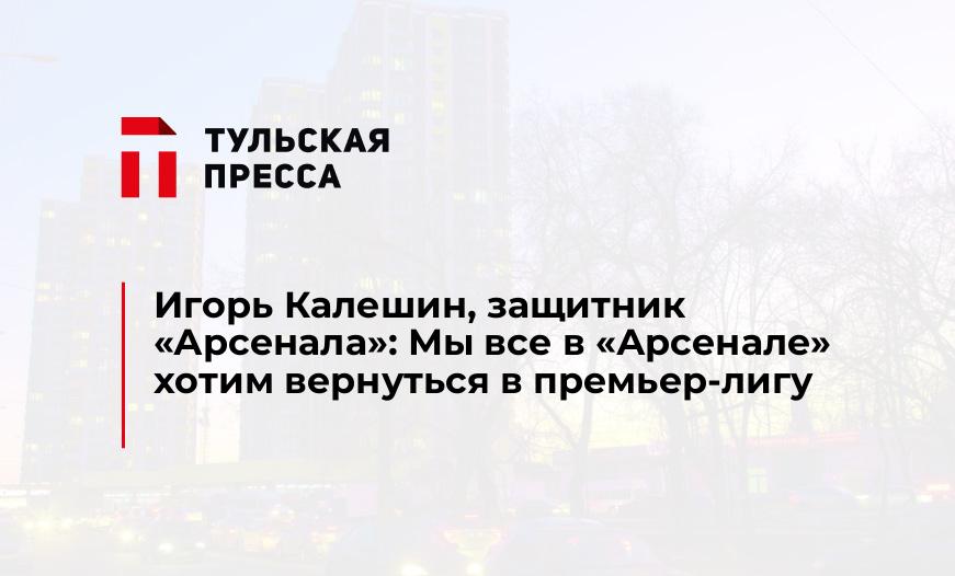 Хочу вернуться в РФПЛ, заявил защитник тульских оружейников Игорь Калешин. Как стало известно ИА «Тульская пресса», воспитанник майкопского футбола, игравший в клубах «Дружба» Майкоп, «Лада» Тольятти, «Волгарь-Газпром» Астрахань, «Газовик» Оренбург, «Черноморец» Новороссийск, «Тюмень», «Черноморец» Новороссийск, «Волгарь», дал большое интервью официальному изданию ПФК «Арсенал».