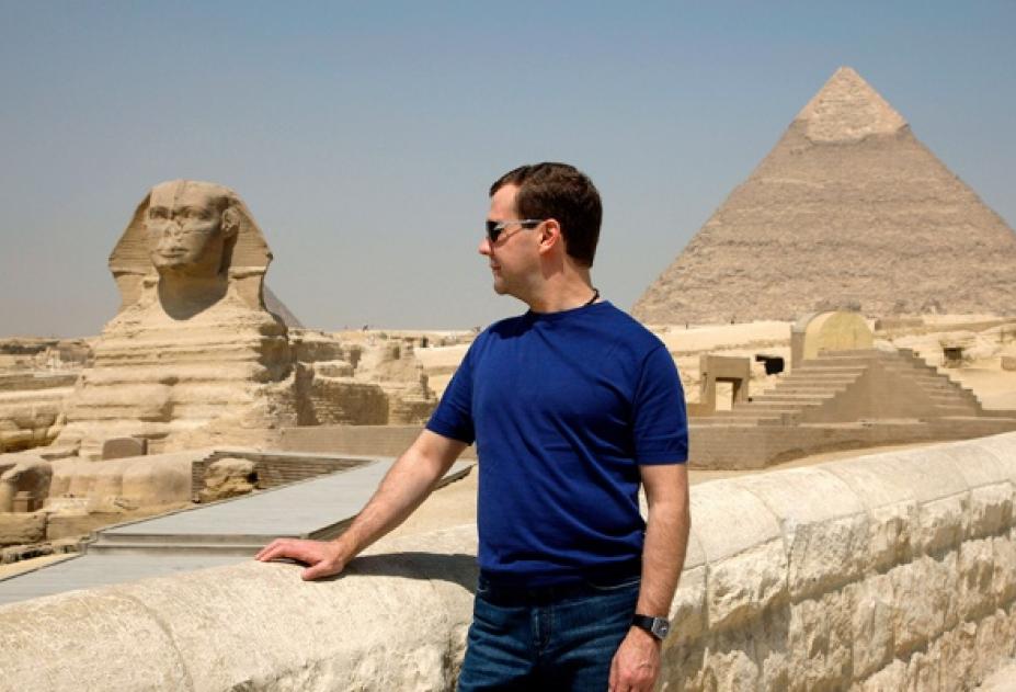 «Я вообще считаю, что каждый человек обязан хотя бы раз побывать в Египте — колыбели цивилизации, увидеть своими глазами его древние памятники», — сказал Медведев накануне визита в Египет.