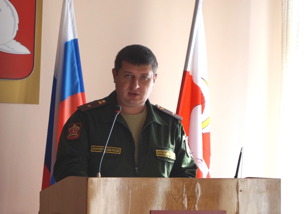 Начальник отдела военного комиссариата Тульской области по городам Новомосковск, Донской и Новомосковскому району Роман Бражников выступил с докладом об итогах призыва граждан на военную службу весной 2015 года.