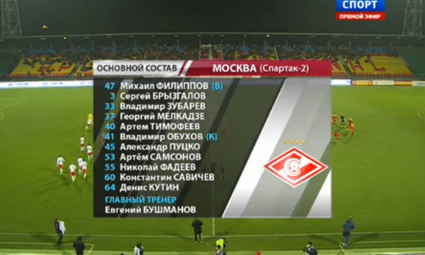 Арсенал в Туле к перерыву выигрывает у Спартака - 2