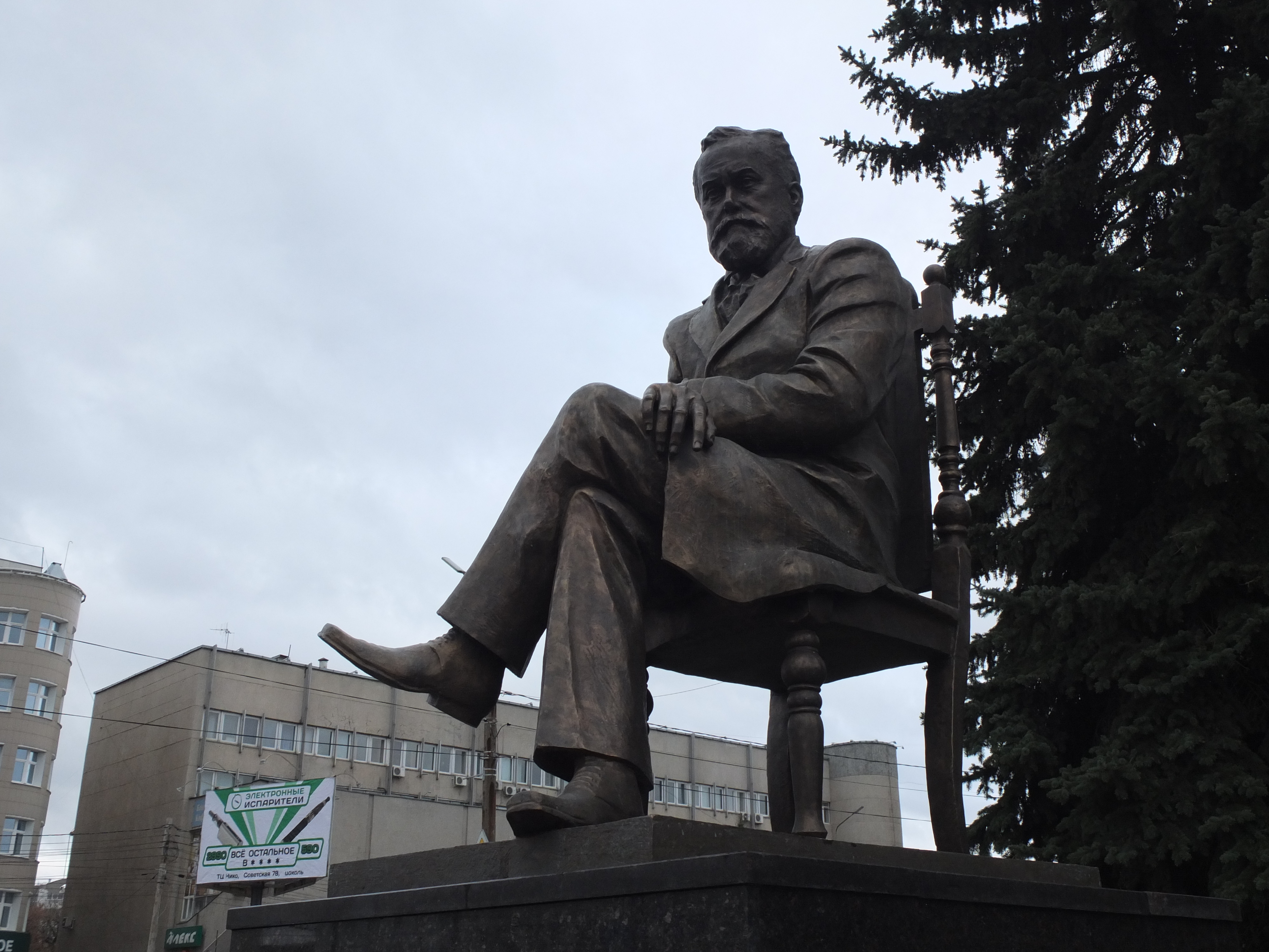 Начинавший литературную деятельность в толстовском журнале «Ясная Поляна» Глеб Успенский вальяжно расположился в кресле в самом сердце областной столицы. Ему будет виден восход. Все «срослось», хорошая идея, пожертвования туляков, труд маэстро, отличное место. Прекрасный памятник.