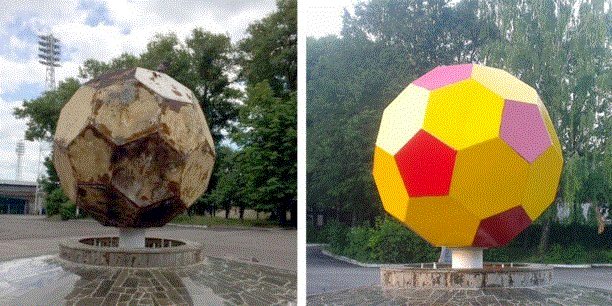 Реставрация мяча у входа на Центральный стадион Тулы — работа не самая сложная и масштабная, но для города, который живет футболом, не менее значимая. Болельщики тульского «Арсенала» на свои деньги отремонтировали скульптуру мяча у входа на стадион.