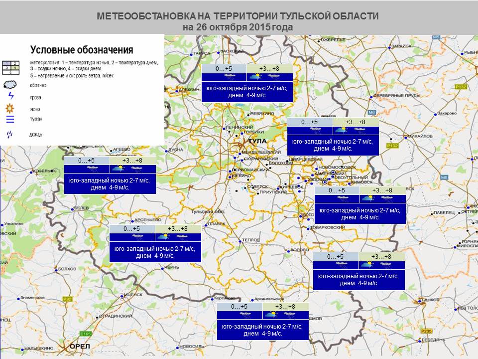 «Метеорологическая обстановка, по данным Тульского центра по гидрометеорологии и мониторингу окружающей среды: