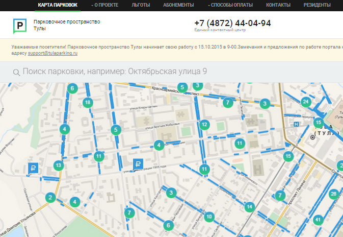— с помощью мобильного приложения «Парковки Тулы», доступного на платформах iOS, Android и WindowsPhone.