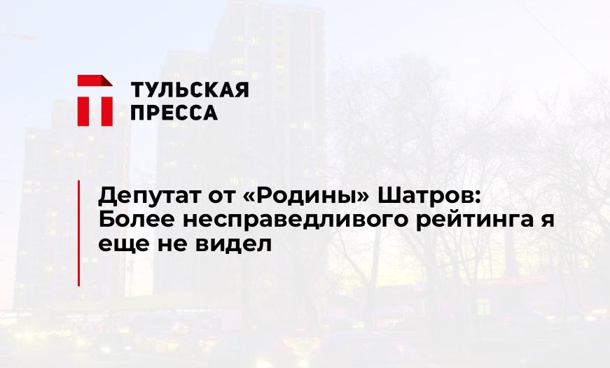 Дмитрий Шатров заявил нашему корреспонденту: «Я много рейтингов видел, сам в некоторых участвовал. Но более несправедливого рейтинга, на мой взгляд, я еще не видел. Вернее, вижу в первый раз.