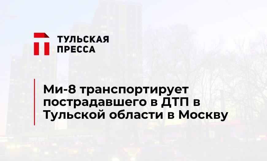 Ми-8 транспортирует пострадавшего в ДТП в Тульской области в Москву