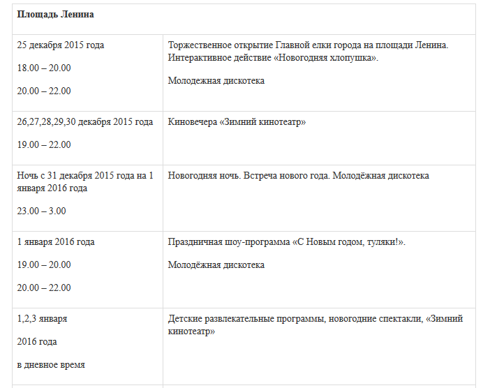 Где туляки смогут отпраздновать Новый год, сообщили ИА «Тульская пресса» в администрации города. В пресс-службе горадминистрации нам предоставили предварительную программу празднований, посвященных встрече 2016 года, в Большой Туле.